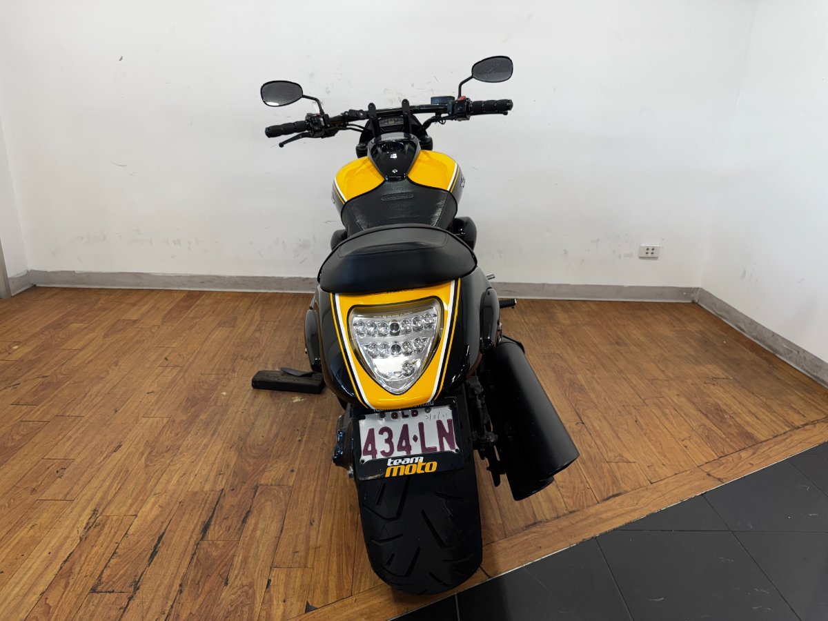 2014 Suzuki M109R BOSS edition! Yes one for the boss here! Beautifully presented, some scuffs here and there, but that can be expected of a bike of this caliber! Stunning colourway, comfort and power to boot! What else could you want from this big muscle cruiser! Don't miss out!! With up to a 3 year mechanical protection plan and the most competitive finance and insurance packages available, as Australia?s largest motorcycle retailer no one makes it easier to purchase a used Motorcycle. Plus we can organise to have your bike delivered directly to your door anywhere in Australia through our dedicated motorcycle freighters.